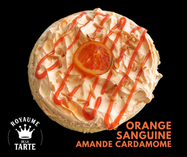 Fond de pâte maison, crème pâtissière à l’orange sanguine et cardamome, crème douce à l’amande, confit d’orange sanguine et cardamome, amandes effilées. Édition limitée ! Faites vite il ne reste que quelques jours !